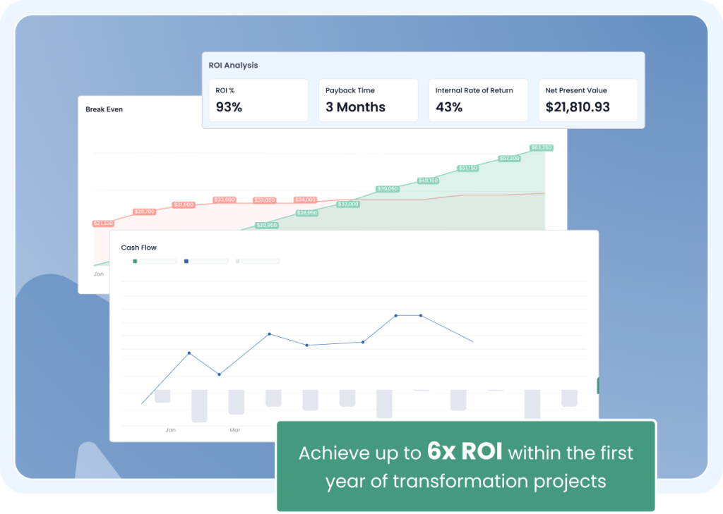 Confidently test the impact of any change. See the financial effect of adding automation or redesigning a workflow before you invest a cent.